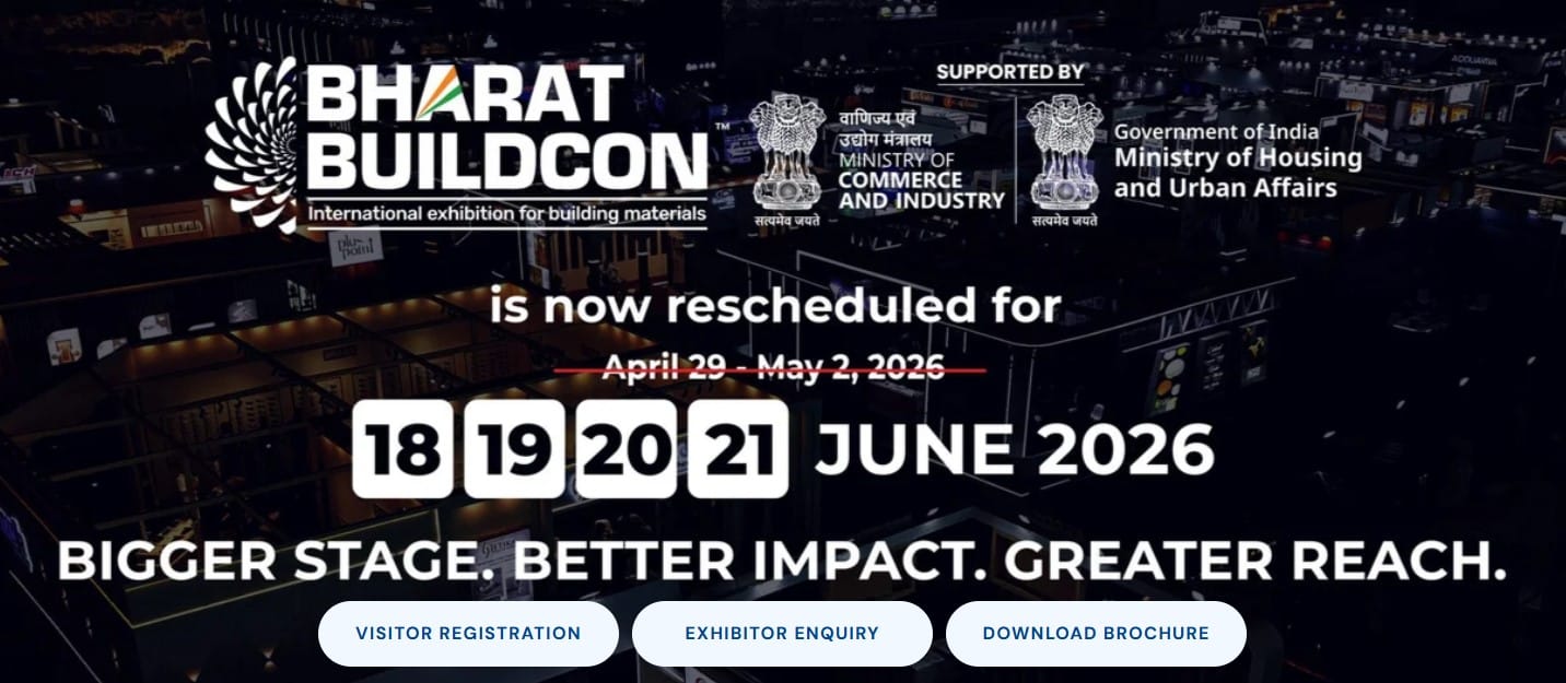Bharat Buildcon 2026, India's largest building material exhibition, has been officially rescheduled to 18–21 June 2026 at YashoBhoomi, Dwarka, New Delhi. The reschedule was communicated directly to registered international buyers via an official organiser notification, citing the evolving geopolitical landscape and ongoing disruptions to global supply chains as the primary reasons for the date change. The event is on. The venue is confirmed. If you were tracking this for your sourcing calendar, update the date and keep reading.